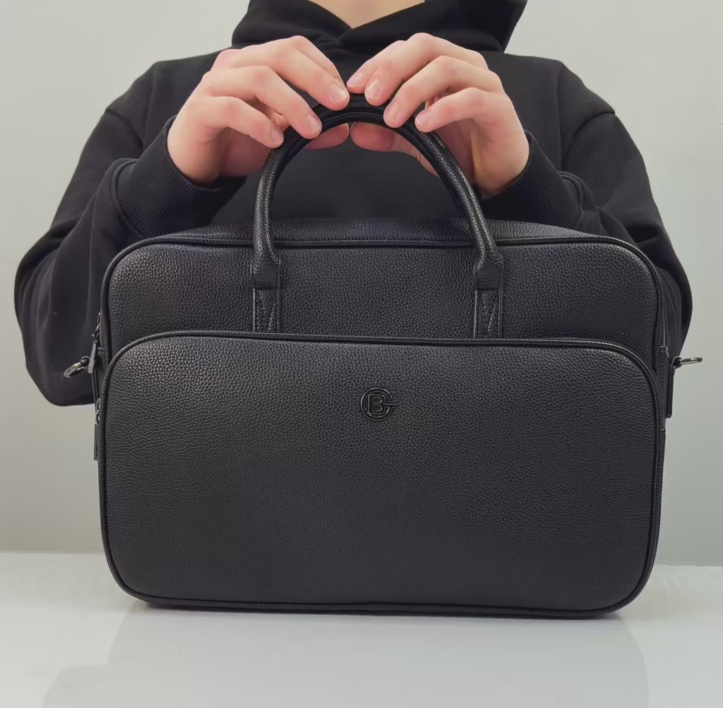 This sleek, modern vegan leather brief -workbag is crafted from premium pebbled material for a polished, professional look. Designed with a padded compartment that fits a 16" laptop, it keeps your tech protected and secure. The top handle and comfortable crossbody strap offer versatile carrying options so you can move through your day with ease. Stylish, structured, and functional — the perfect briefcase to elevate your workday style.