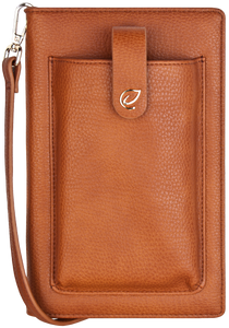 The Cora iSmart is a crossbody purse with built in wallet and phone holder making it a great handsfree travel companion. The Cora iSmart is made from premium pebbled vegan leather and fits most smartphones in the front compartment and has room for multiple cards and cash.