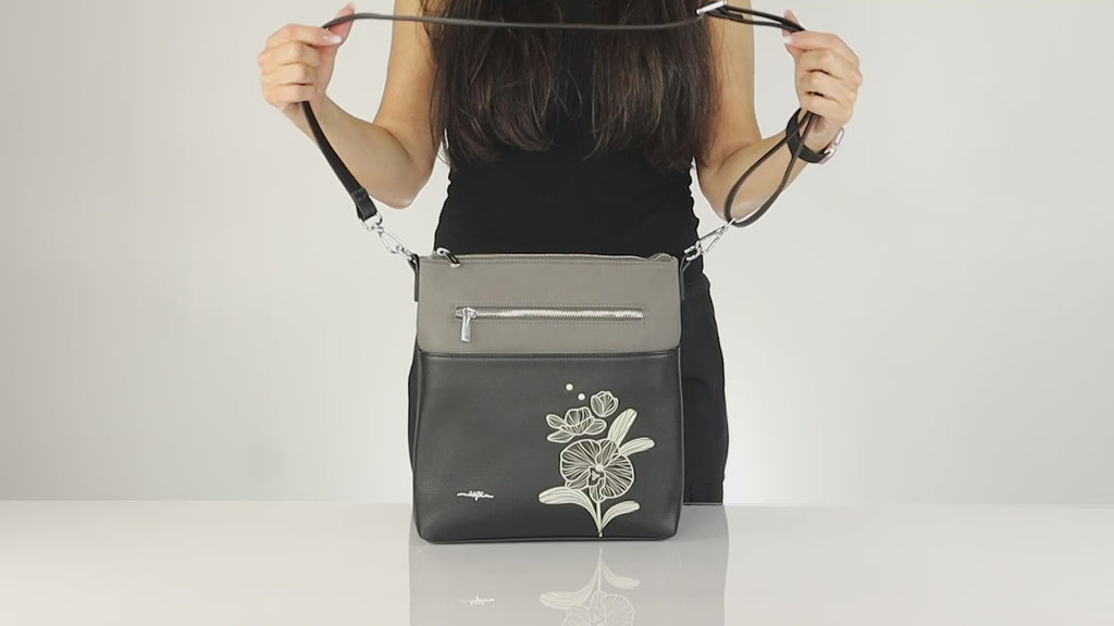The Jay Crossbody is the perfect vegan leather messenger bag for everyday style and organization. Its chic design features a lively floral pattern that instantly makes your outfit stand out. With multiple pockets and compartments, the Jay crossbody keeps all your essentials neatly organized while offering hands-free convenience. Stylish, functional, and full of personality — it’s the ideal crossbody for any occasion.