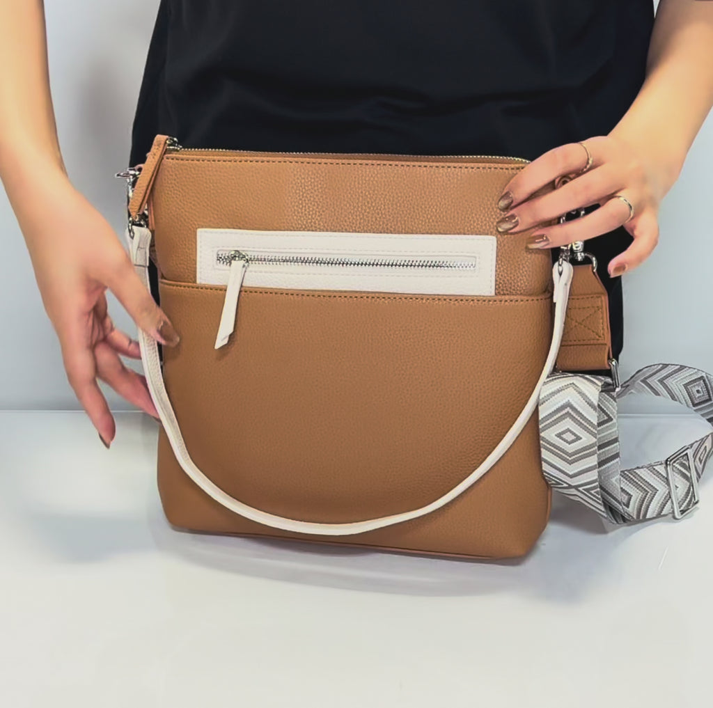 Jesse is a medium-sized soft vegan leather bag made from premium, cruelty-free PU that’s both durable and stylish. Designed with multiple easy-access pockets to keep your essentials organized, this versatile bag comes with two detachable straps — an on-trend woven patterned strap that’s wider for comfort, and a sleek shoulder strap that takes you effortlessly from day to night. Ethically made and designed in Toronto, it’s the perfect eco-friendly vegan crossbody bag for everyday wear.